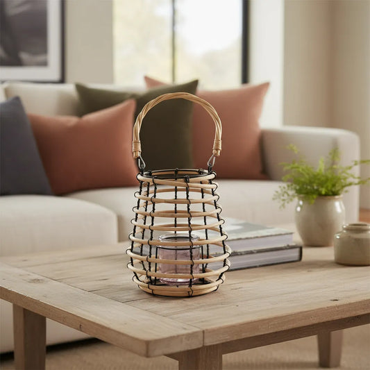 Porta Vela Colgante Rústico Estilo Mimbre Con Alambre