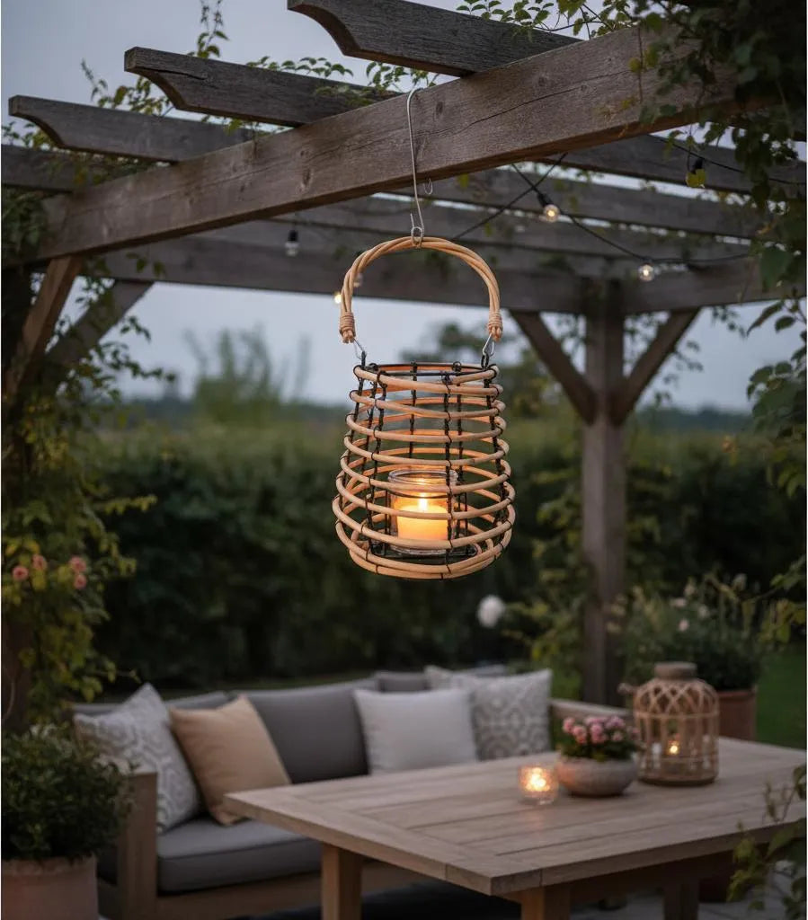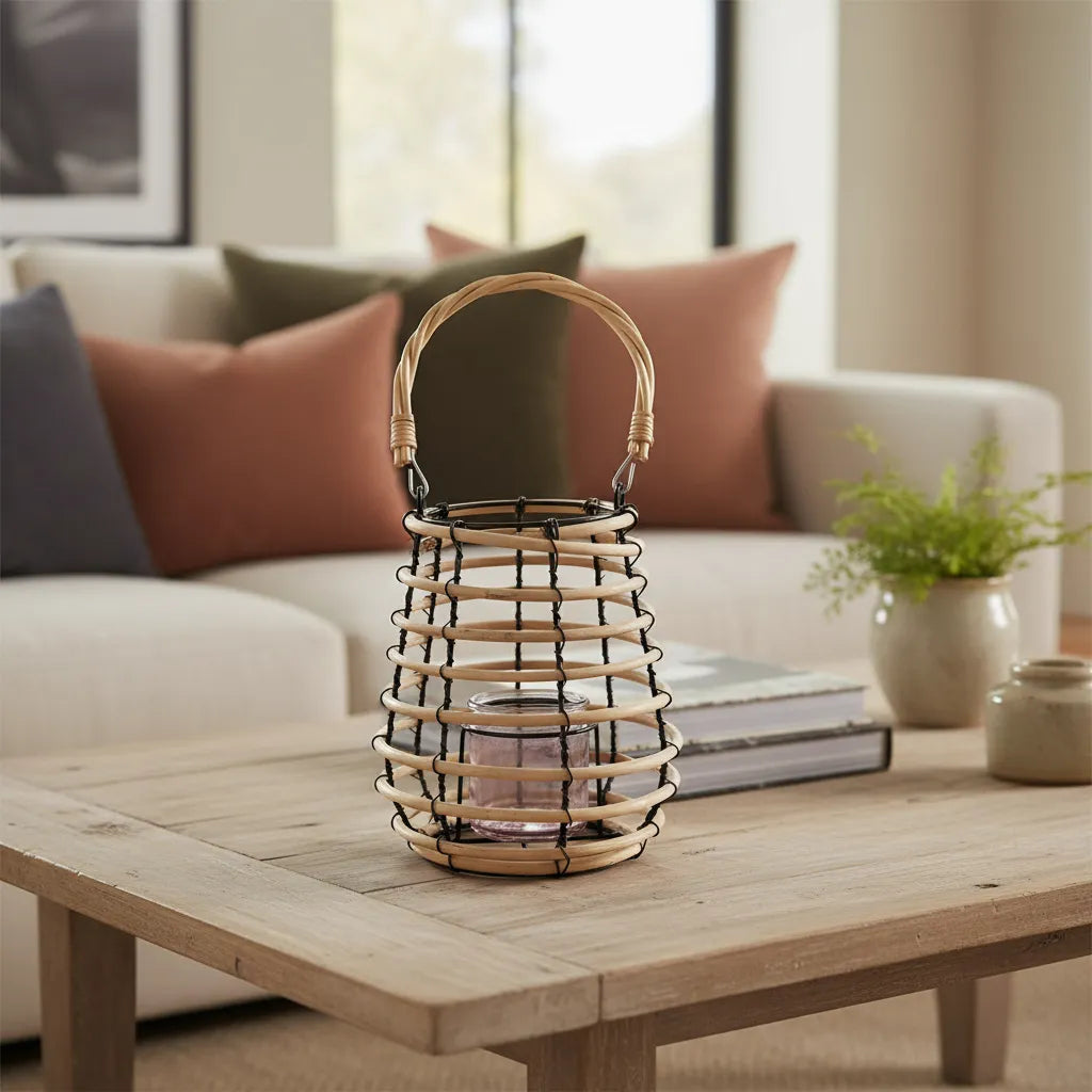Ya sea en el salón, la terraza o el dormitorio, este Porta Vela Colgante Rústico añadirá un toque de calidez y estilo a tu hogar. Su acabado de alta calidad y su cuidado diseño lo convierten en un elemento decorativo que no puede faltar en tu colección. Atrévete a darle un toque especial a tu espacio con este encantador Porta Vela Colgante Rústico de estilo mimbre con alambre.