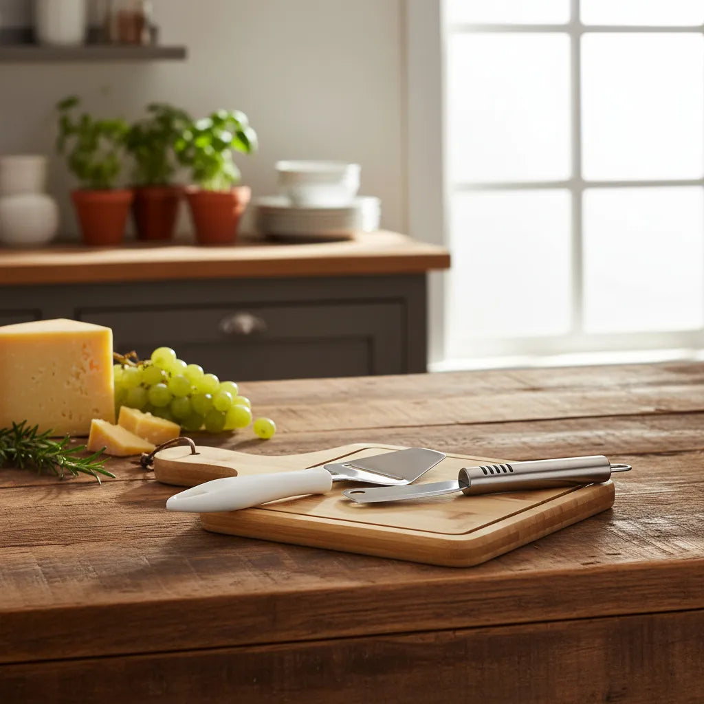 Ideal para reuniones, cenas o simplemente para disfrutar en casa, esta tabla se convierte en el centro de atención en cualquier ocasión. Sorprende a tus invitados con una presentación impecable de quesos, embutidos y frutas, elevando tus eventos a un nuevo nivel. Con la Tabla de Cortar Queso con Utensilios, cada momento se convierte en una celebración del buen gusto.