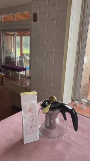 Esta elegante tetera de vidrio con capacidad de 900 ml incluye un infusor de acero inoxidable de alta calidad, ideal para preparar tus infusiones favoritas de manera fácil y rápida.